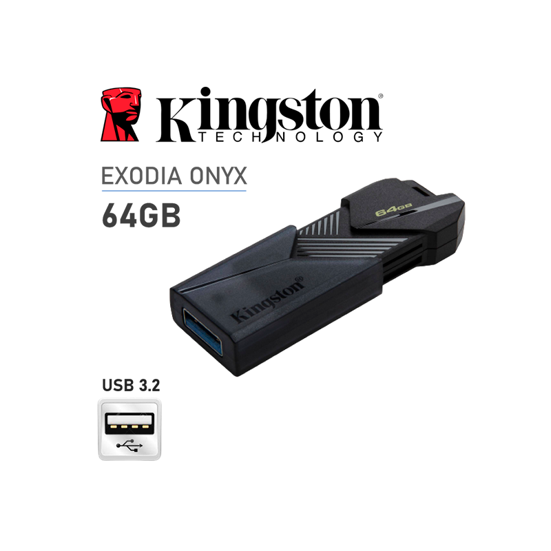 Kingston DataTraveler® Exodia™ Onyx es una unidad Flash compatible con USB 3.2 Gen 11 que posibilita rápidas transferencias para facilitar y simplificar el almacenamiento. Diseñada con una elegante carcasa negro mate, la unidad DT Exodia Onyx es la compañía perfecta y asequible para el almacenamiento. La unidad está disponible en diversas capacidades, de hasta 256 GB2.